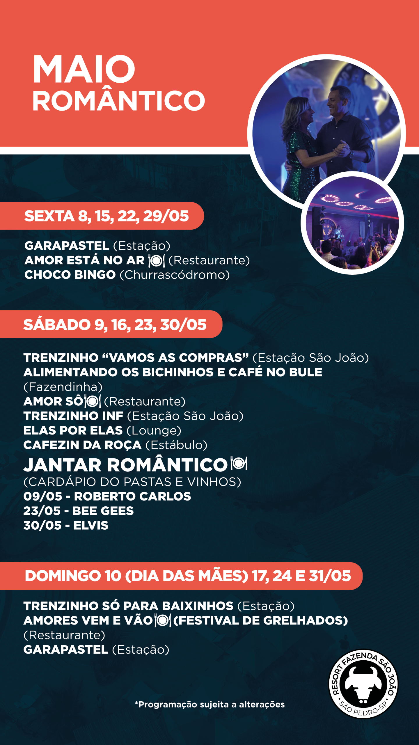 Viva um mês inteiro de romance, com jantares especiais, momentos únicos e aquele clima encantador que só o São João oferece.
